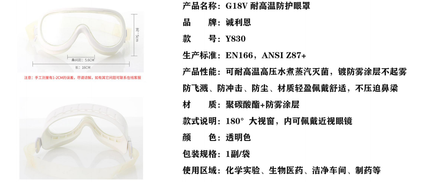 產(chǎn)品性能:可耐高溫濕熱滅菌,防起霧、防飛濺、防沖擊、防塵,材質(zhì)輕盈佩戴舒適,不壓鼻梁